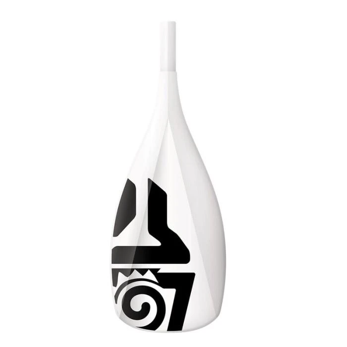 L’arrête définissant le concave est plus arrondie à l’extrémité de la pale, pour séparer l’eau en douceur. Cela apporte plus de précision et de stabilité une fois la pale dans l’eau.